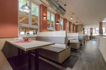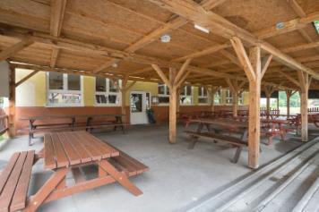 Příjemné posezení nabízí velká krytá zahrádka s dětským hřištěm, k dispozici je WIFI a uvnitř restaurace velká TV a projektor.